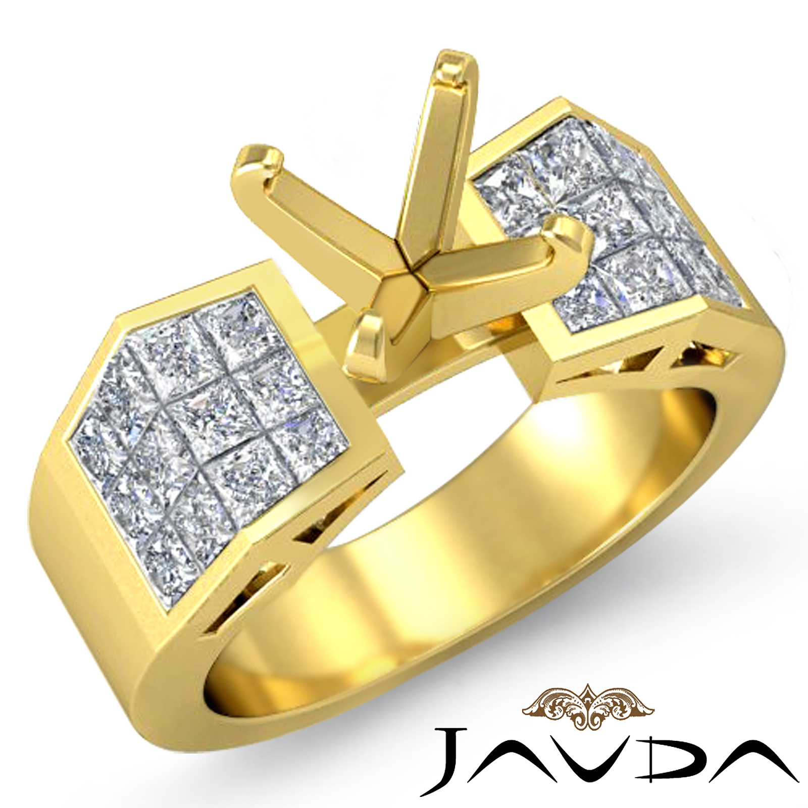 Princess Diamond Engagement Women Ring Invisible Semi Mount 18k Gold (0.84Ct. tw.)