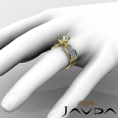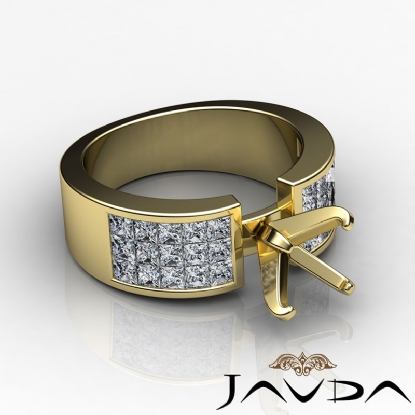 Commemorate the occasion with this polished finish ring, made in 14k Gold Yellow. It features a multi shape semi mount, with princess cut diamonds in invisible setting glowing along the shank. (1.29Ct. tw.)