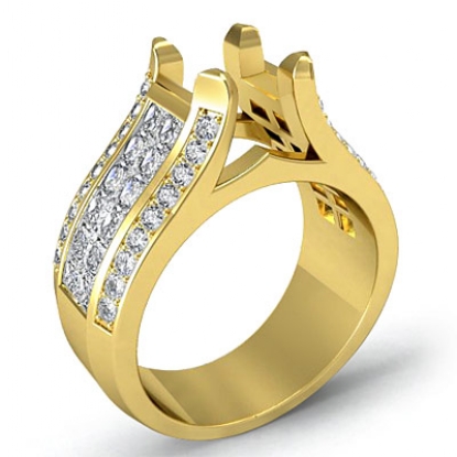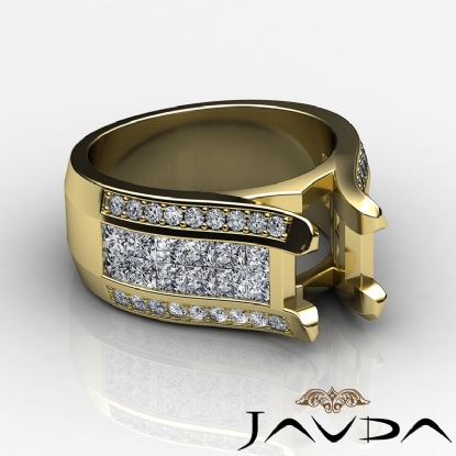 Elegant in every way, this diamond engagement ring is made in 18k Gold Yellow. It showcases a cushion cut semi mount in prong, with round and princess cut diamonds dazzling in invisible setting along the shank. (1.7Ct. tw.)