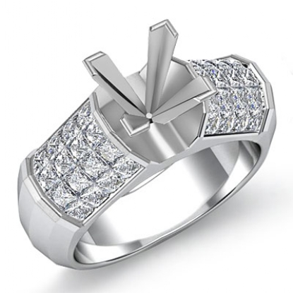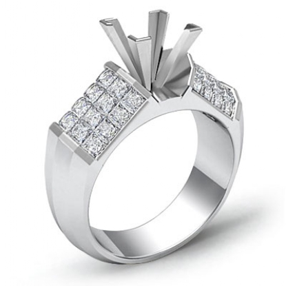 Princess Diamond Women Engagement Ring Invisible 18k W Gold Semi Mount (1.2Ct. tw.)