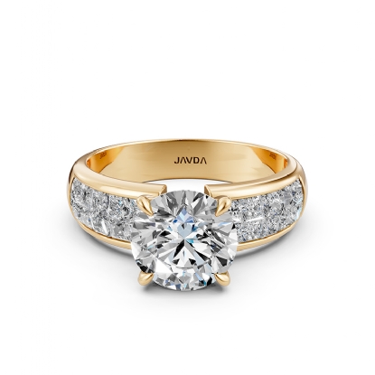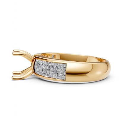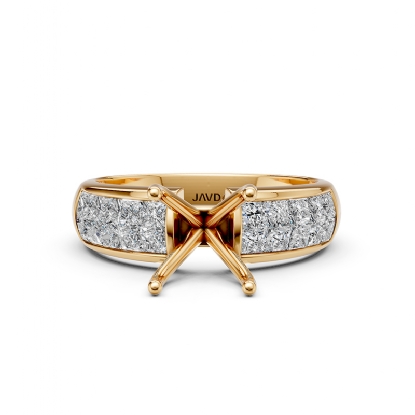 Ideal for any center diamond of your choice, this diamond engagement ring is made in 18k Gold Yellow. It showcases a round semi mount in prong, with princess cut diamonds in invisible setting sparkling along the shank. (0.86Ct. tw.)