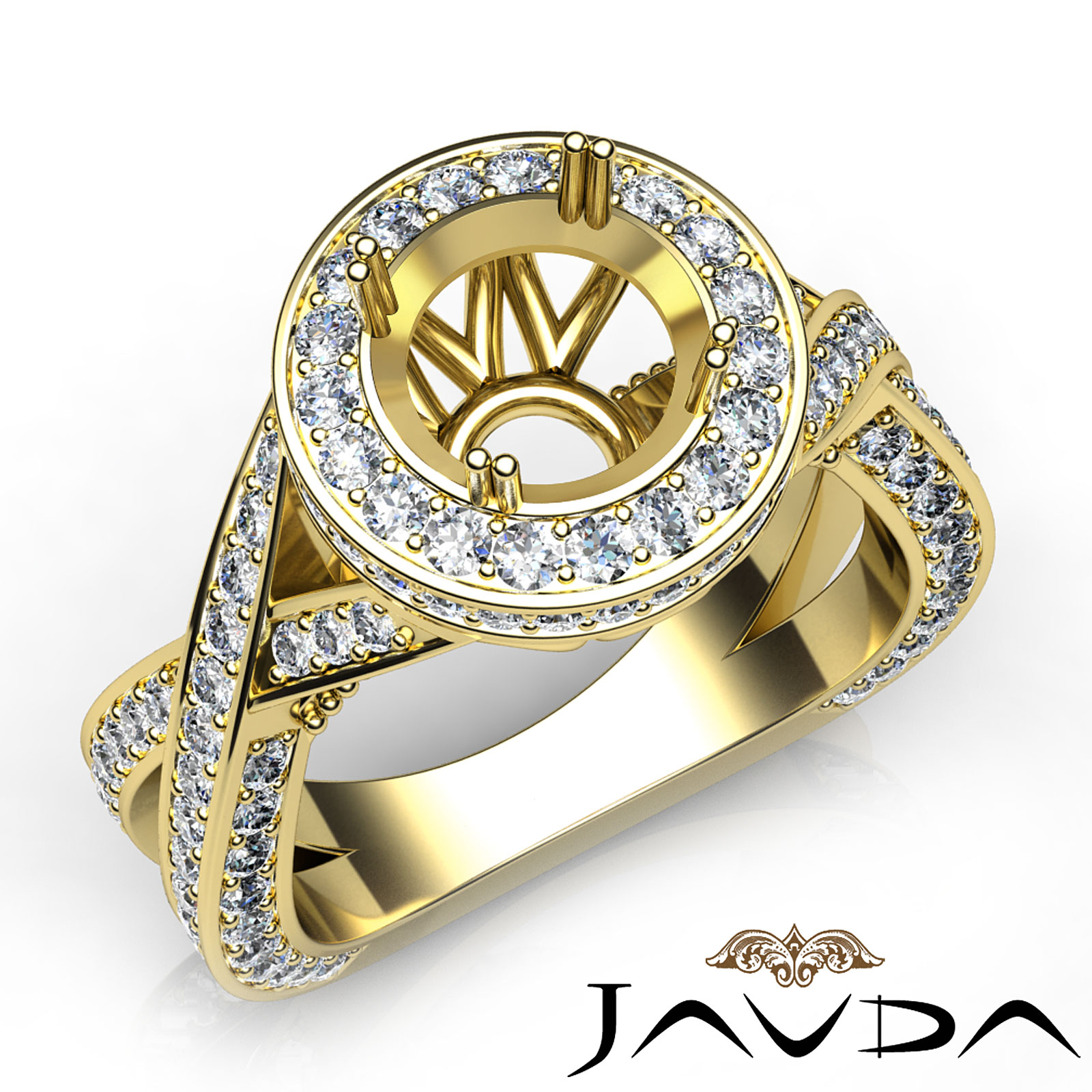 Celebrate lavishly with this 14k Gold Yellow diamond engagement ring from Javda. It features a round semi mount, with of round pave diamonds on halo and along the cross shank. (1.5Ct. tw.)