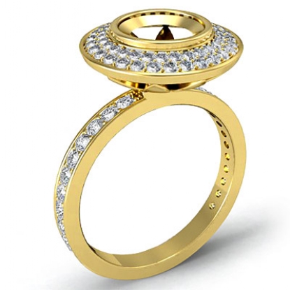 Halo Pave Setting Diamond Engagement Round Semi Mount Ring 18k Gold (0.75Ct. tw.)