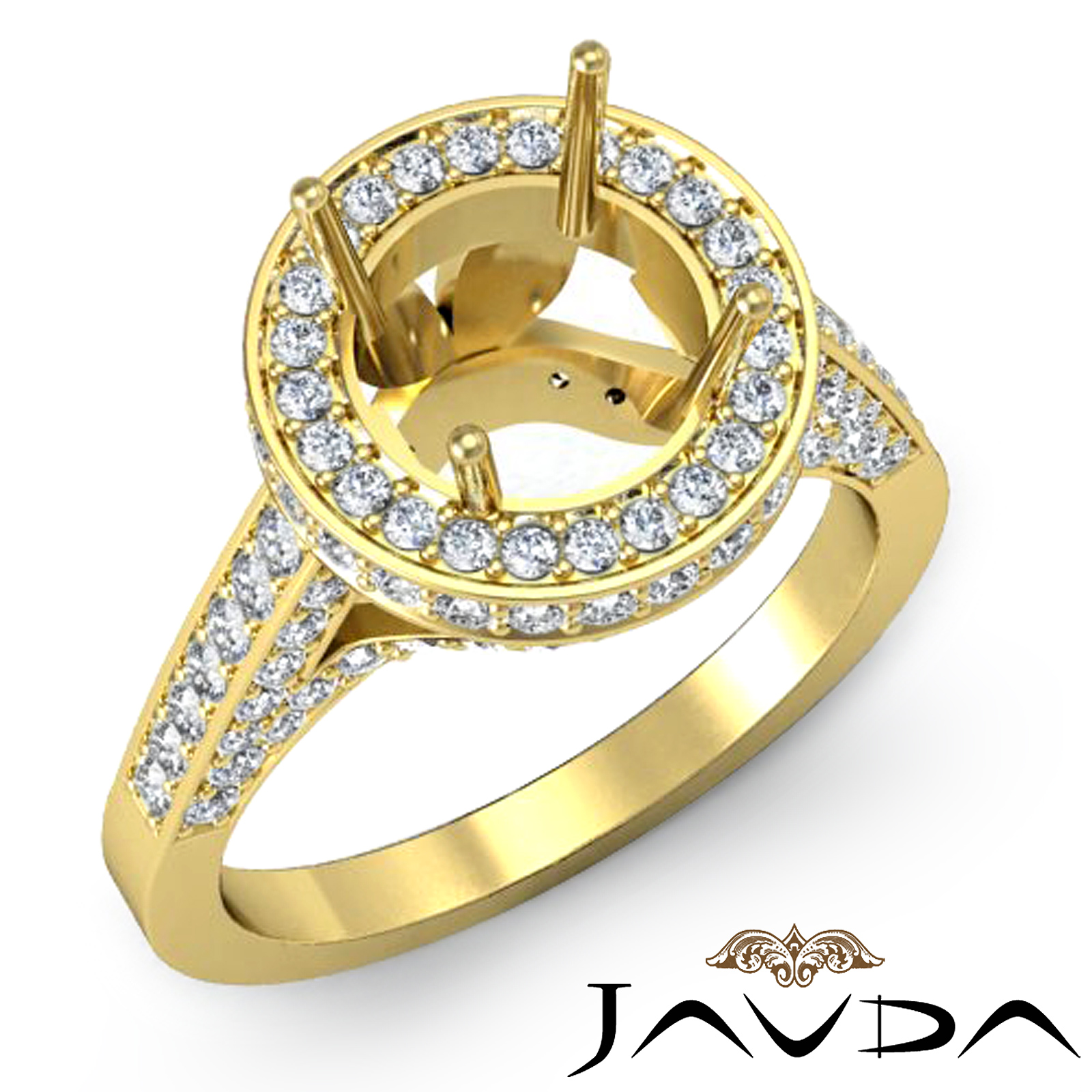 Diamond Engagement Round Ring 18k Gold Halo Semi Mount (1.3Ct. tw.)