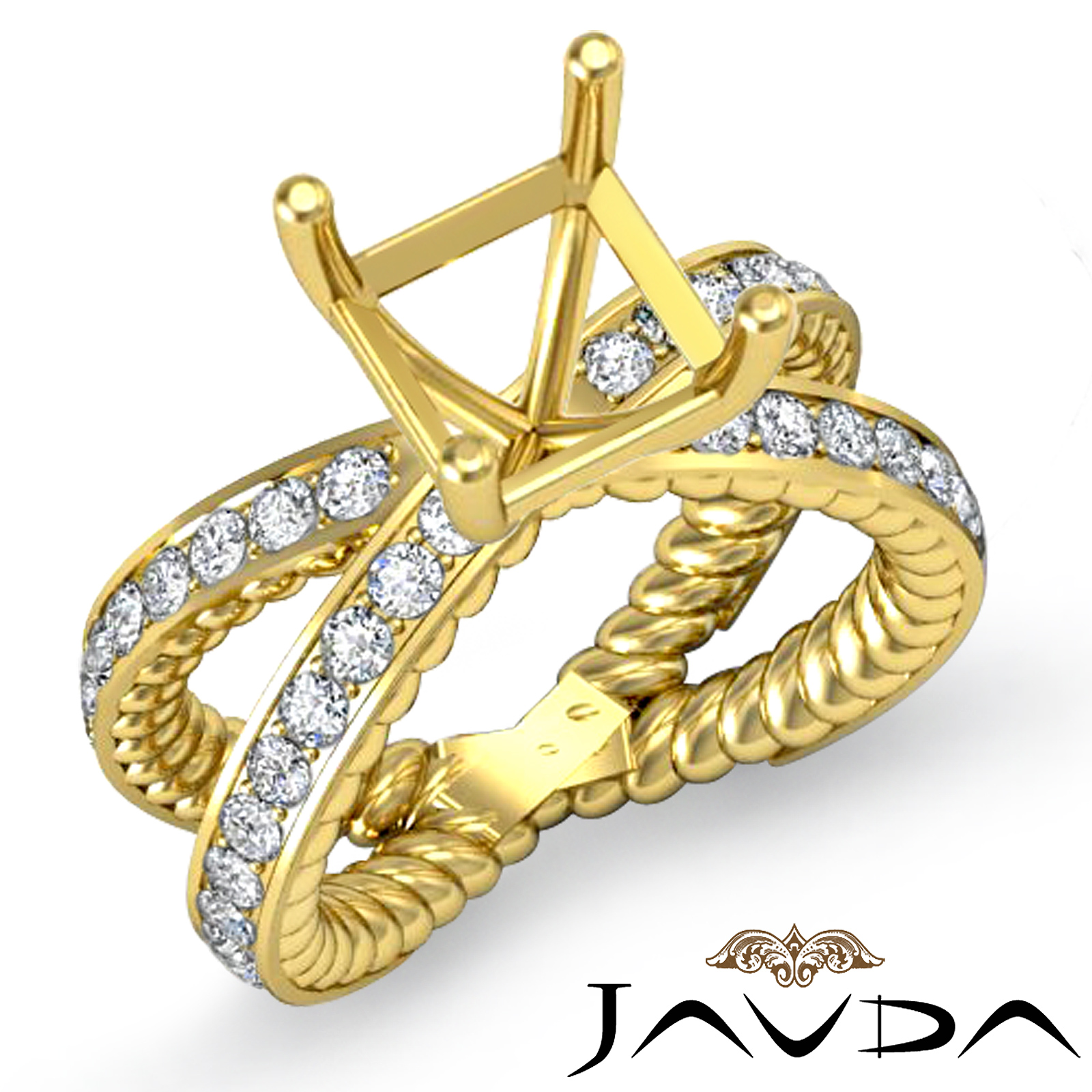 Round Cut Side Stones Diamond Antique Rope Gold Band Engagement Ring Setting , Diamond prong set on 18k Gold Yellow for Princess Cut in a Semi Mount. (1.02Ct. tw.)