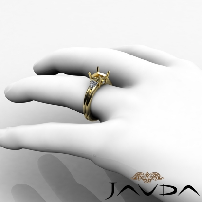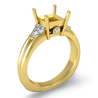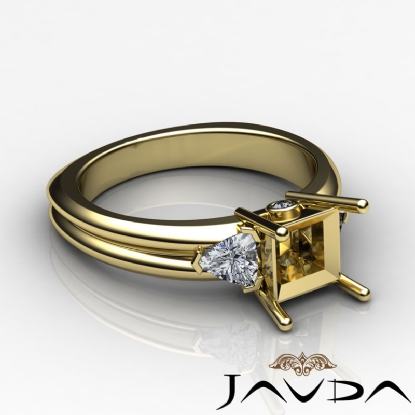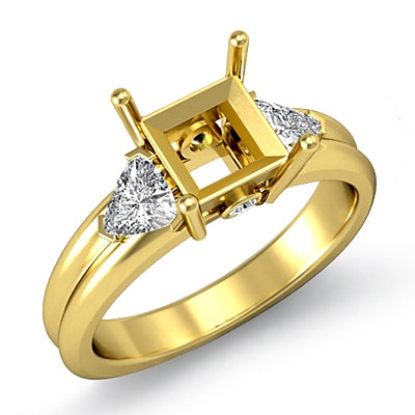 Trillion Cut Diamond 3 Three Stone Engagement Ring for Princess Semi Mount made in 18k Gold Yellow Gold with 2 Bezeel Set Round diamond In European Shank. (0.62Ct. tw.)
