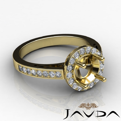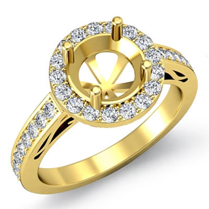 Get ready for glamour, with this striking diamond engagement ring made in 18k Gold Yellow. This round semi mount ring features prong set round diamonds in halo & along the shank. (0.8Ct. tw.)