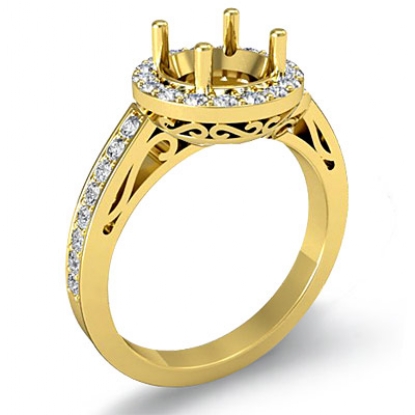Anniversary Diamond Engagement Round Ring 18k Gold Halo Pave Setting Semi Mount (0.8Ct. tw.)