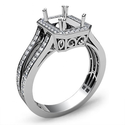 Diamond Engagement Halo Ring Emerald Semi Mount 18k W Gold (0.92Ct. tw.)