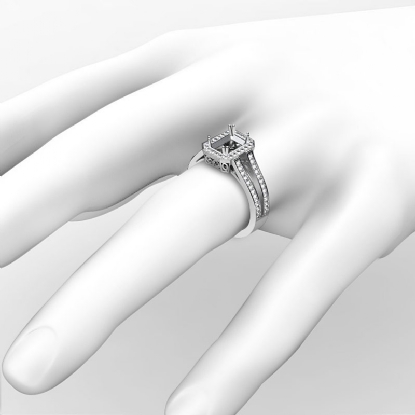 Worthy of your eternal love, this diamond engagement ring is made in 18k Gold White & features an emerald semi mount, with pave set round diamonds in halo & split shank. (0.92Ct. tw.)