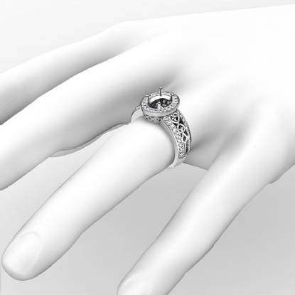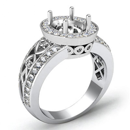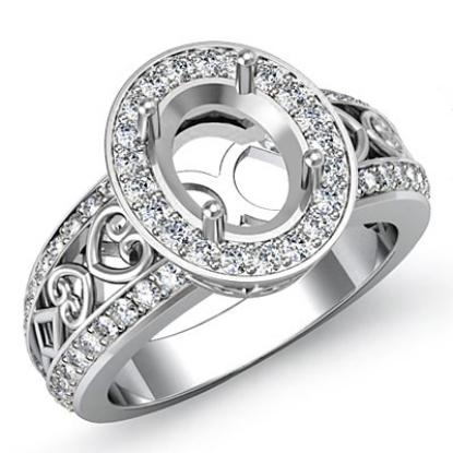 Diamond Engagement Ring Platinum Oval Semi Mount Halo Pave Setting (0.75Ct. tw.)
