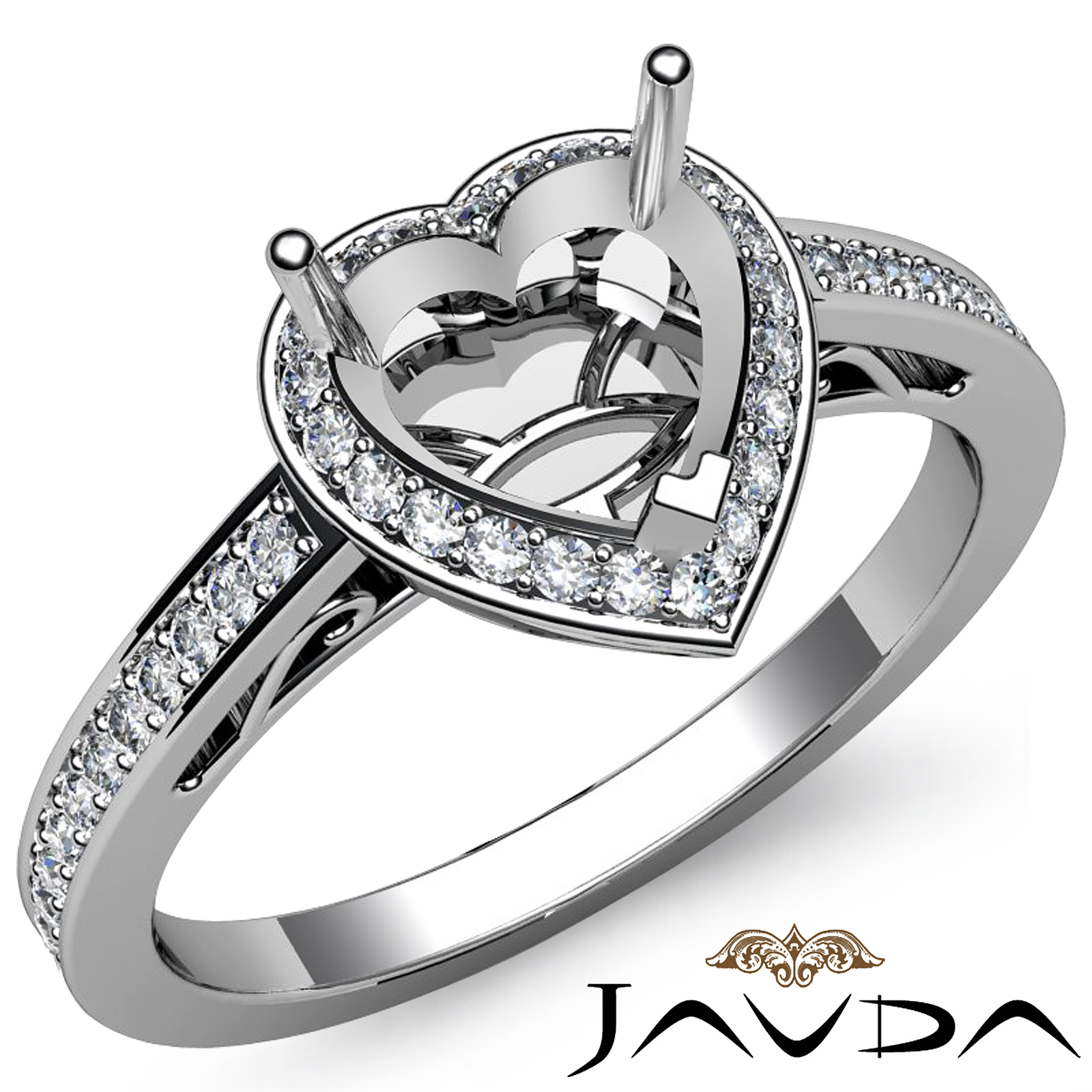 Diamond Engagement Ring Heart Semi MountPlatinum Halo Pave Setting (0.5Ct. tw.)