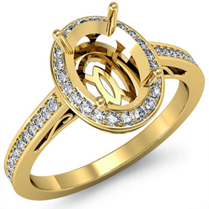 Halo Pave Setting Diamond Engagement Oval Semi Mount Ring 14k Gold (0.5Ct. tw.)