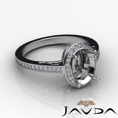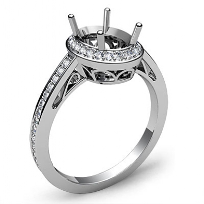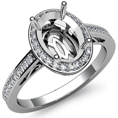 Halo Pave Setting Diamond Engagement Oval Semi Mount Ring 18k W Gold (0.5Ct. tw.)
