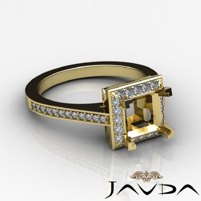 Lavishly romantic, this diamond engagement ring is made in glorious 14k Gold Yellow. This princess semi mount ring features pave set round diamonds in halo & along the shank. (0.5Ct. tw.)