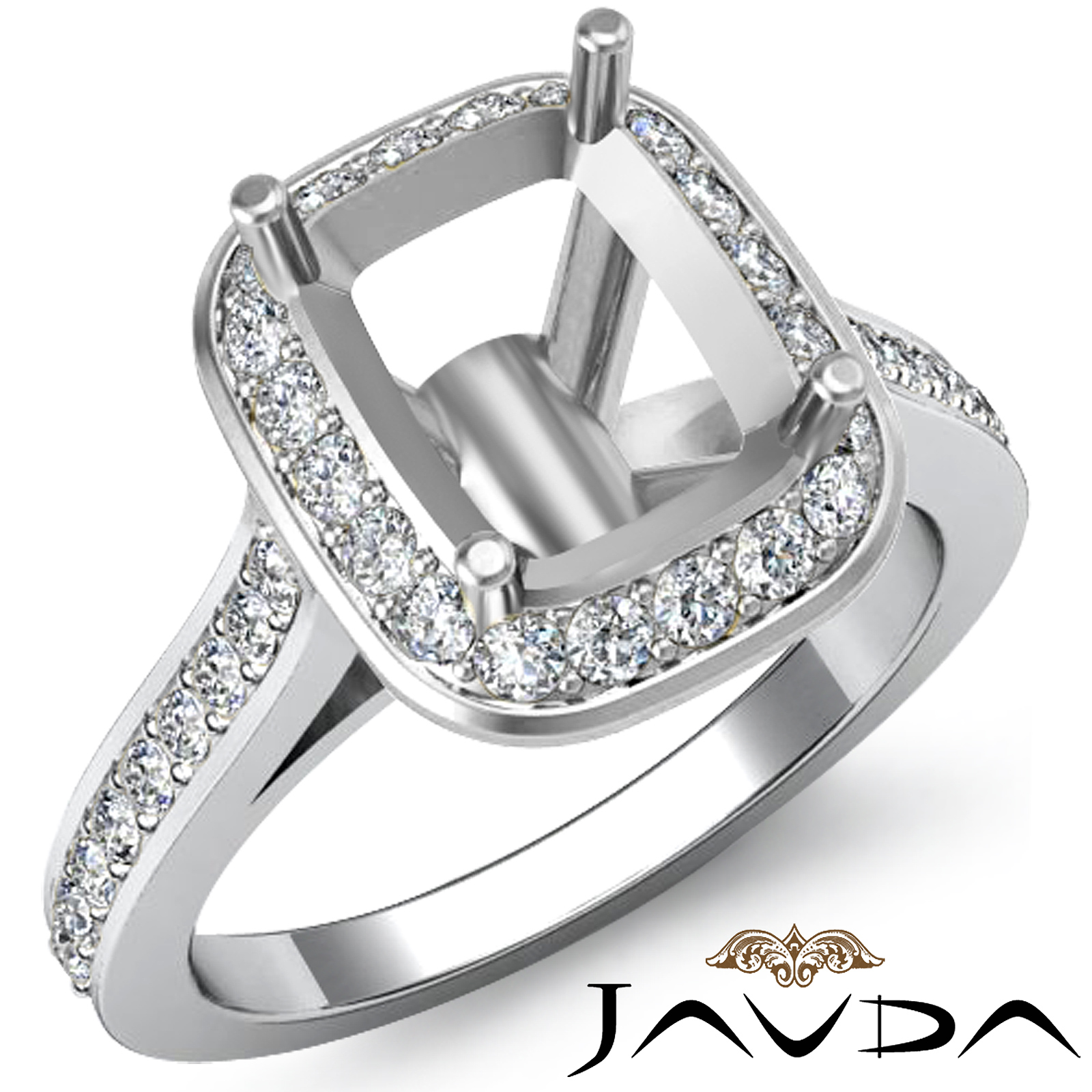 0.70ct Diamond Engagement Ring 18k W Gold Cushion Semi Mount Halo Setting (0.7Ct. tw.)