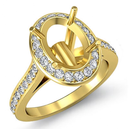 Diamond Engagement Ring Oval Semi Mount 18k Gold Halo Pave Setting (0.7Ct. tw.)