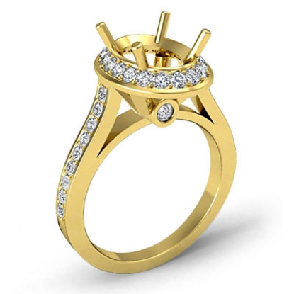 Celebrate lavishly with this 18k Gold Yellow diamond engagement ring. This oval semi mount ring features round pave diamonds in halo & along the shank. (0.7Ct. tw.)