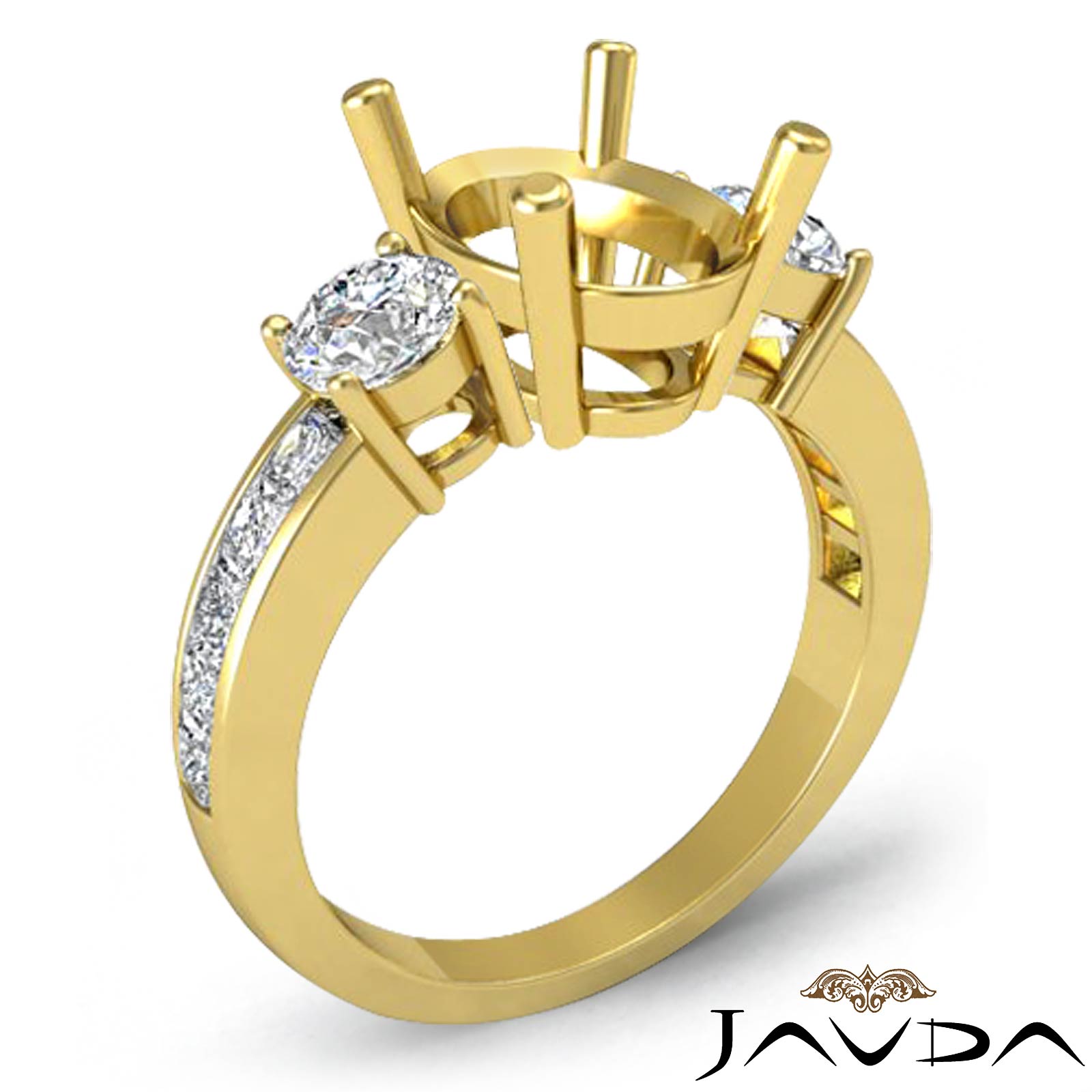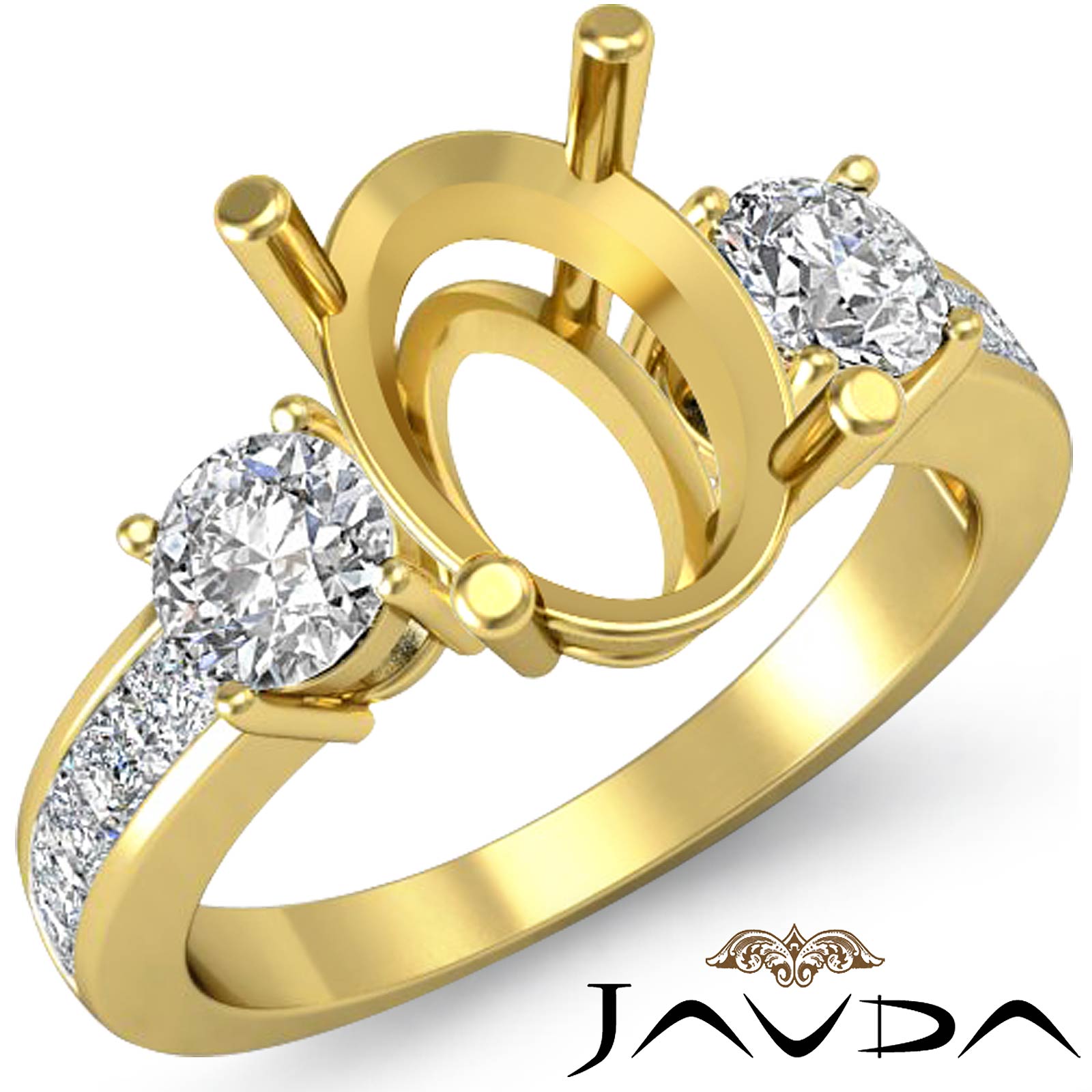 Diamond Engagement Three 3 Stone Ring Round Oval Semi Mount 18k Gold (1Ct. tw.)