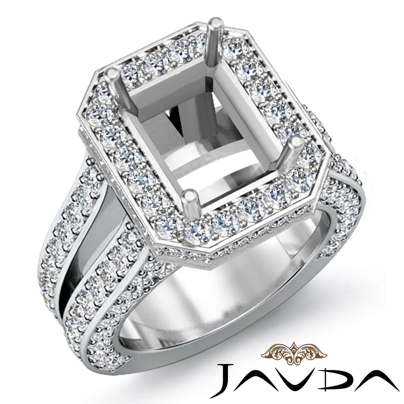 Halo Setting Diamond Engagement Emerald Semi Mount Ring 18k W Gold (2.52Ct. tw.)