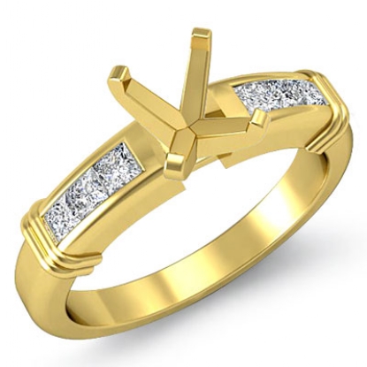 Side Stone Diamond Engagement Women's Ring for Princess Diamond Channel Setting made in 18k Gold Yellow for Cushion Semi Mount. (0.4Ct. tw.)