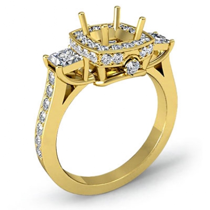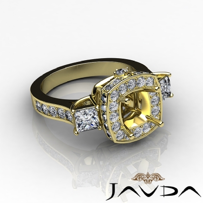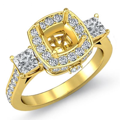 Diamond 3 Stone Engagement Princess Cushion Ring 14k Gold Halo Setting (1.1Ct. tw.)