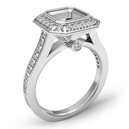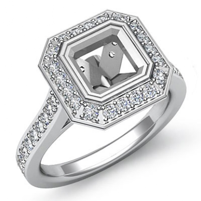 Diamond Engagement Halo Setting Ring Asscher Semi Mount 18k W Gold (0.5Ct. tw.)