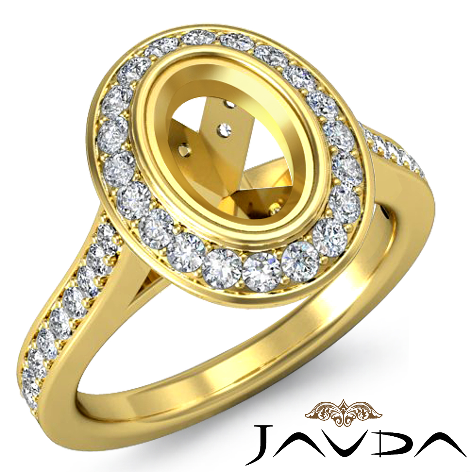 Diamond Engagement Ring 14k Gold Oval Semi Mount Halo Pave Setting (0.5Ct. tw.)