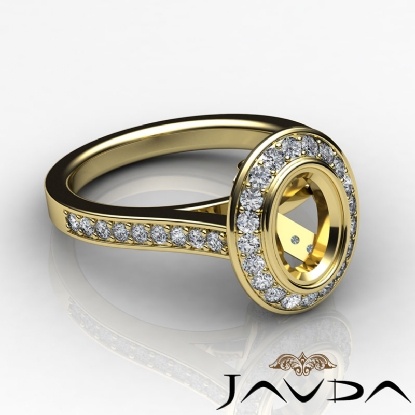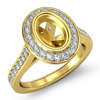 Diamond Engagement Ring 18k Gold Oval Semi Mount Halo Pave Setting (0.5Ct. tw.)