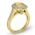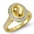 Striking yet forever timeless, this 18k Gold Yellow diamond engagement ring has an oval semi mount. It showcases round pave diamonds in halo & along the shank. (0.5Ct. tw.)