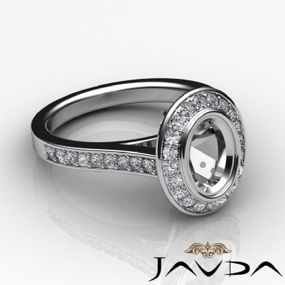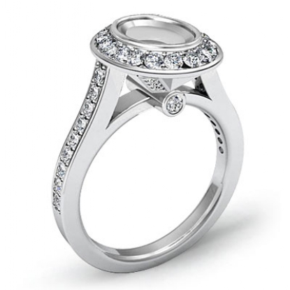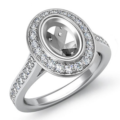 Diamond Engagement Ring Platinum Oval Semi Mount Halo Pave Setting (0.5Ct. tw.)