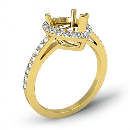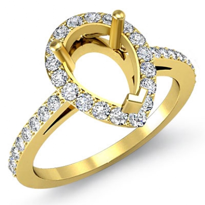 Diamond Engagement Ring Pear Semi Mount Halo Pave Setting 14k Gold (0.45Ct. tw.)