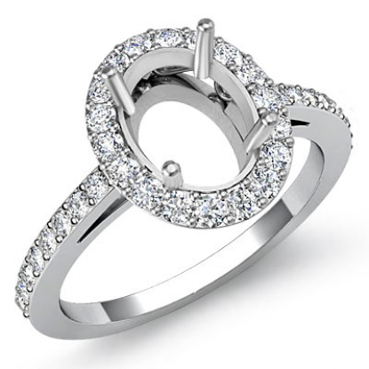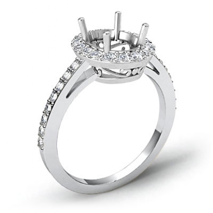 Filigree Oval Halo Pave Diamond Engagement Semi Mount Ring 18k W Gold (0.45Ct. tw.)