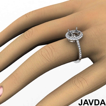 Brilliant and timeless, this filigree oval halo pave diamond engagement semi mount ring made in 18k Gold White. Features round pave set diamonds on the halo & shank. Also available in 14k & 18k white gold and yellow gold and platinum 950. (0.45Ct. tw.)