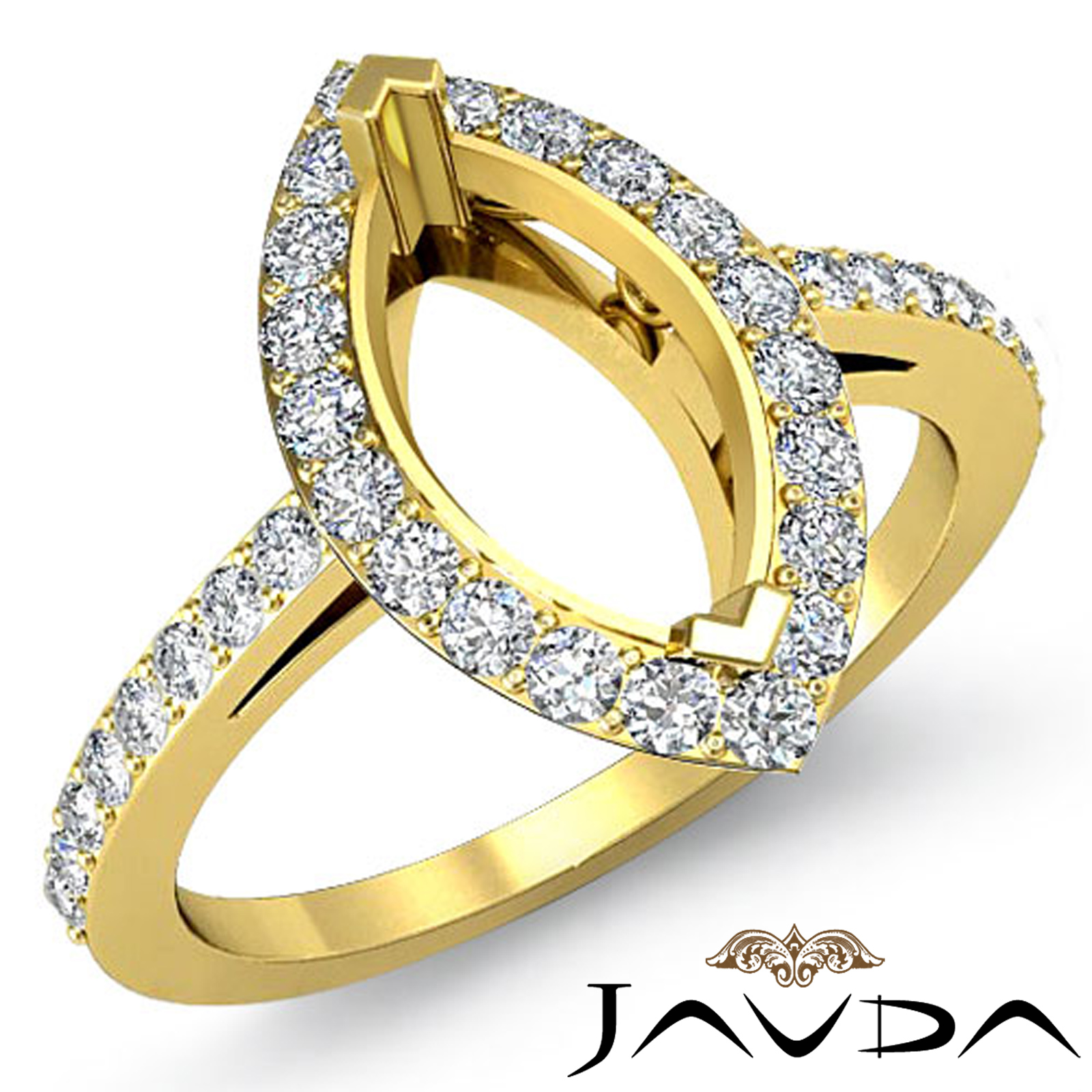 Bring brilliance to life?s great moments, with this semi mount diamond engagement ring, Made in 14k Gold Yellow, it features a marquise semi mount, with pave set round diamonds in halo & on the shank. (0.45Ct. tw.)