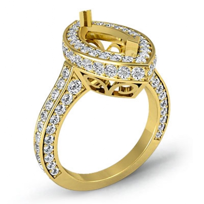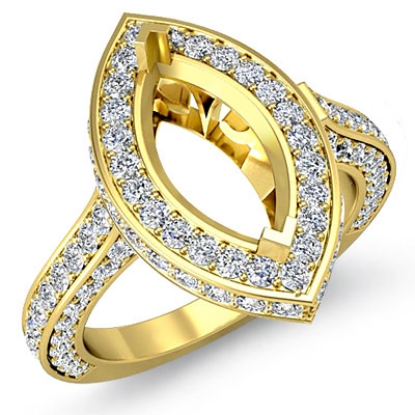 Diamond Engagement Ring Marquise Semi Mount 14k Gold Halo Setting (1.6Ct. tw.)