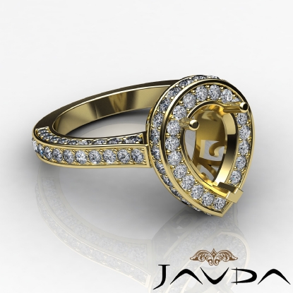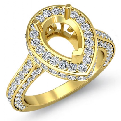 Diamond Engagement Pear Ring 14k Gold Halo Pave Setting Semi Mount (1.6Ct. tw.)