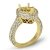 Unapologetically modern, this 14k Gold Yellow diamond engagement ring has a pear semi mount. It features round diamonds in pave setting on halo & along the shank. (1.6Ct. tw.)