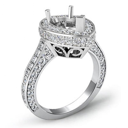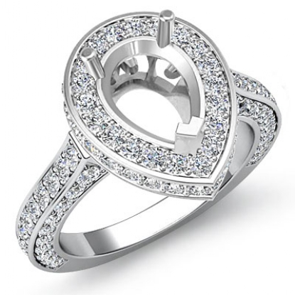 Diamond Engagement Pear Ring 18k W Gold Halo Pave Setting Semi Mount (1.6Ct. tw.)