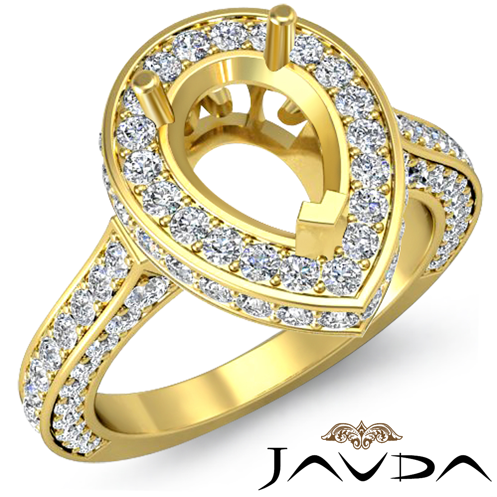 Diamond Engagement Pear Ring 18k Gold Halo Pave Setting Semi Mount (1.6Ct. tw.)