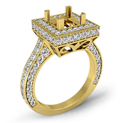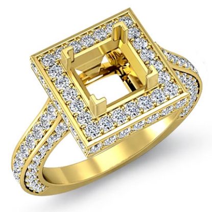 Diamond Engagement Halo Setting Ring Princess Semi Mount 14k Gold (1.6Ct. tw.)