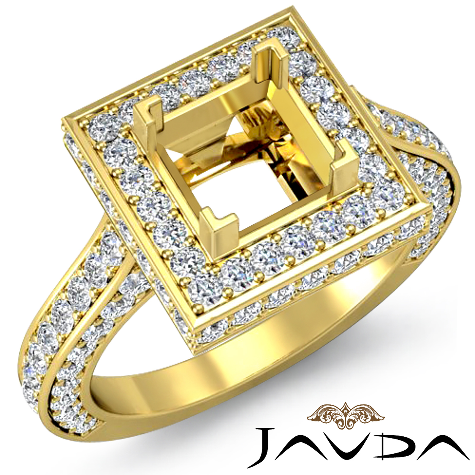 Diamond Engagement Halo Setting Ring Princess Semi Mount 18k Gold (1.6Ct. tw.)