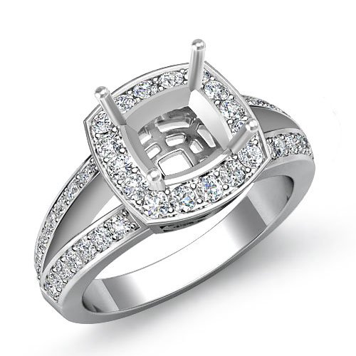 Diamond Engagement Ring 18k W Gold Cushion Semi Mount Halo Setting (0.6Ct. tw.)