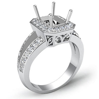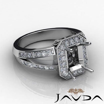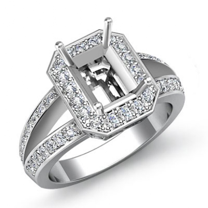 Diamond Engagement Ring Emerald Semi Mount Halo Setting 18k W Gold (0.6Ct. tw.)