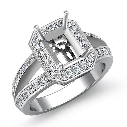 Diamond Engagement Ring Emerald Semi Mount Halo Setting Platinum (0.6Ct. tw.)