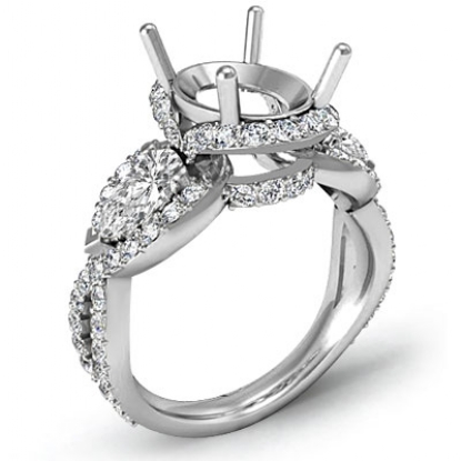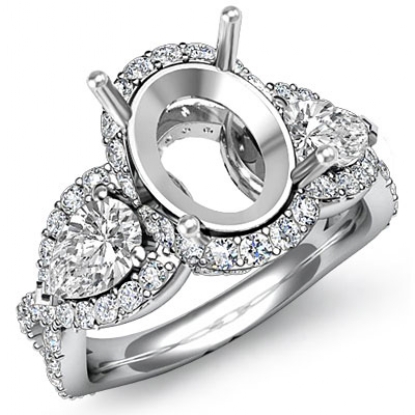 Three 3 Stone Diamond Anniversary Pear Oval Semi Mount Ring Platinum (1.4Ct. tw.)