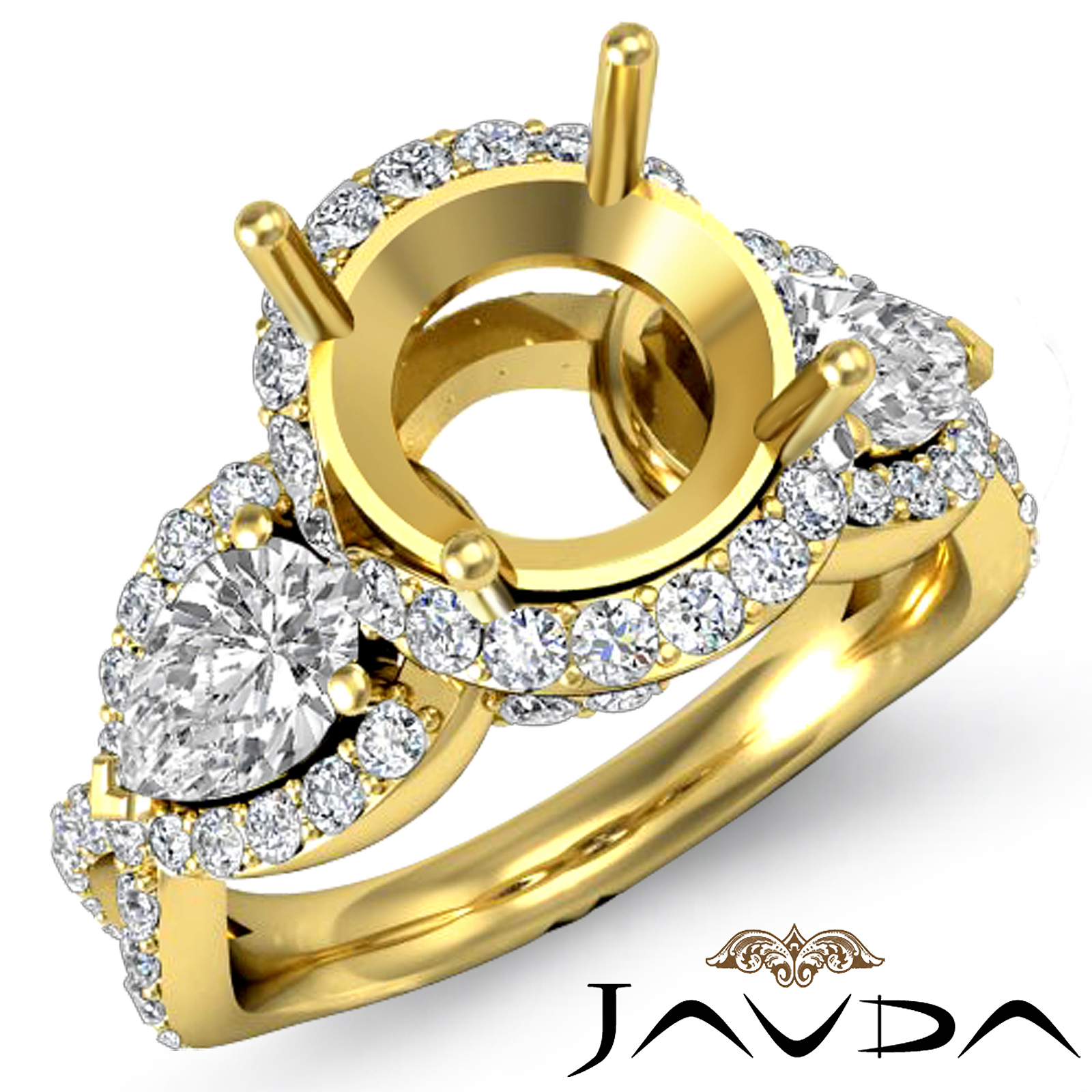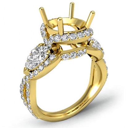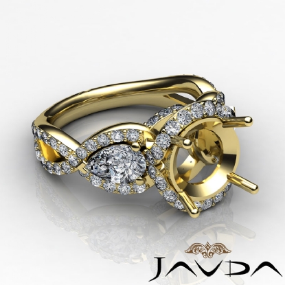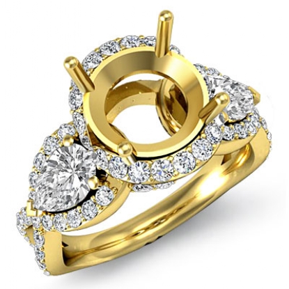 Three 3 Stone Diamond Anniversary Pear Round Semi Mount Ring 18k Gold (1.4Ct. tw.)