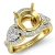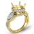 This blooming beauty features three stone engagement ring made in 18k Gold Yellow. of round diamonds frame the semi mount round diamond halo & the shank, surrounding the