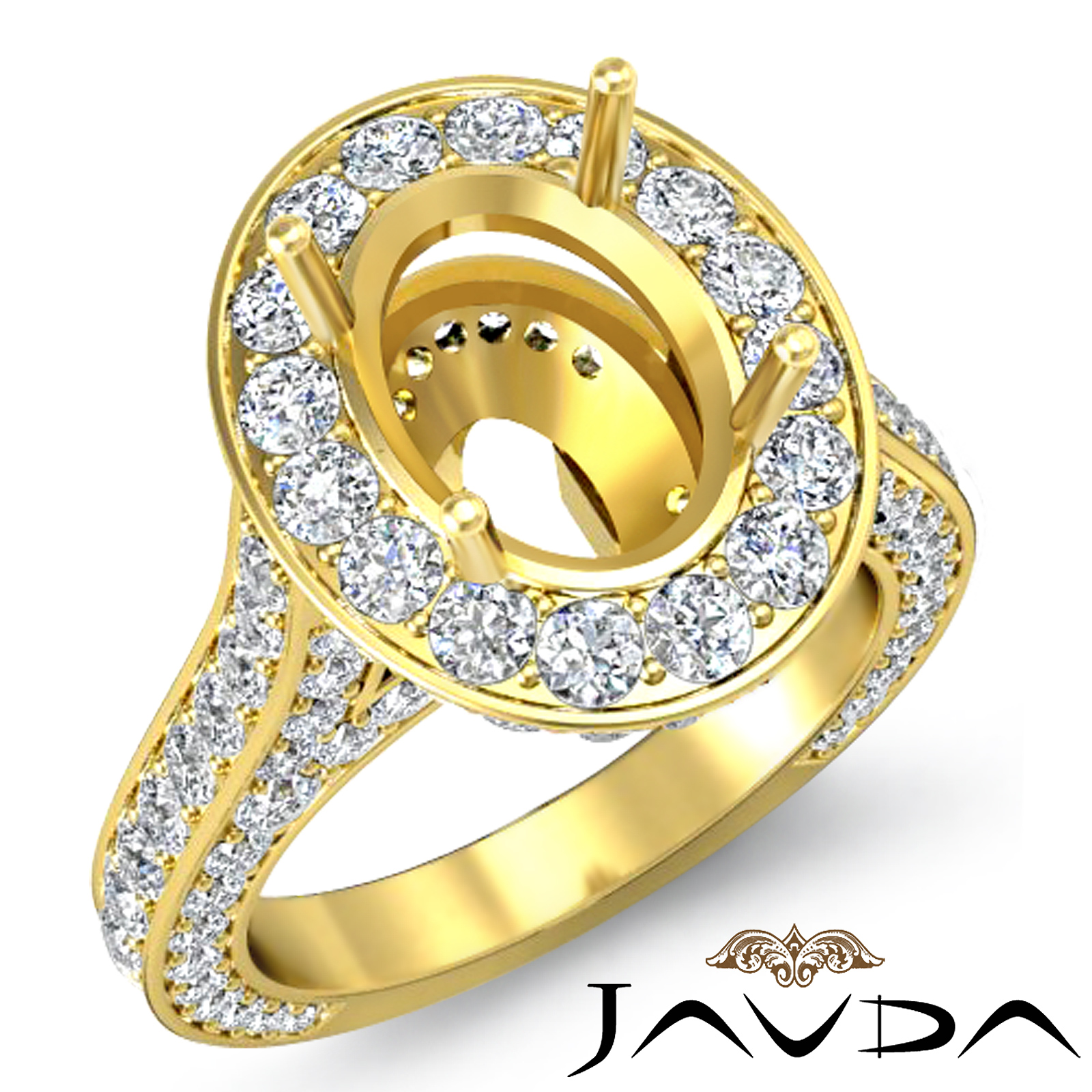 Diamond Engagement Halo Setting Ring Oval Shape Semi Mount 18k Gold (2.1Ct. tw.)
