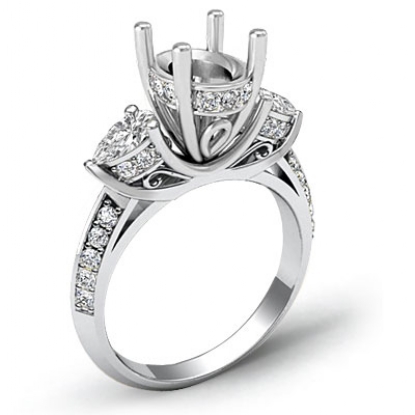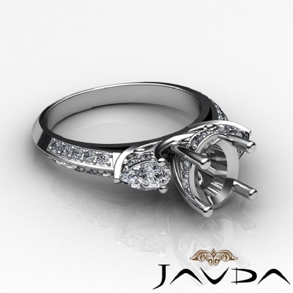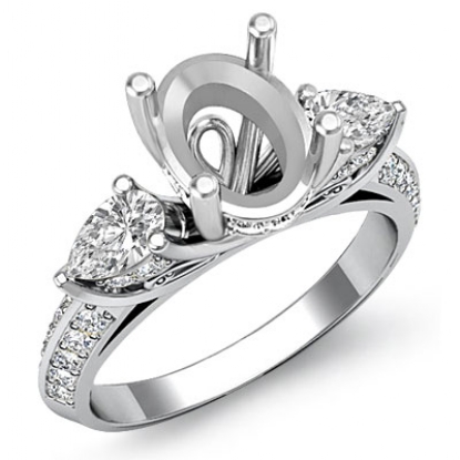 3 Stone Diamond Engagement Ring Pear Oval Setting 18k W Gold Semi Mount (1.21Ct. tw.)